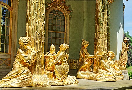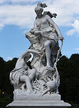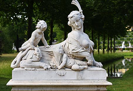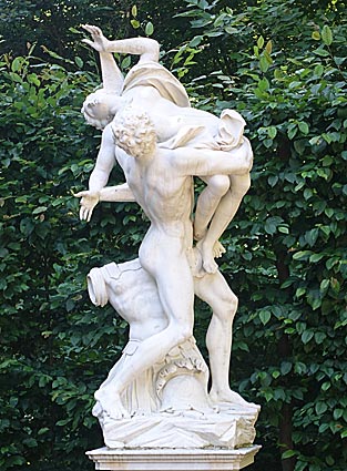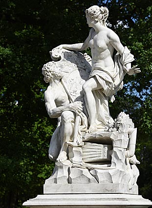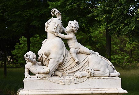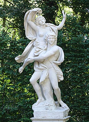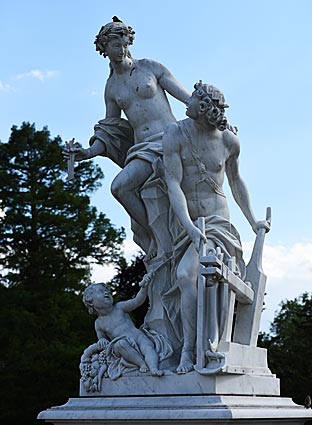 Statuen im Entführungsrondell der Hauptachse (Achse der Macht) — rechts: Bacchus(Dionysos) und Ariadne
