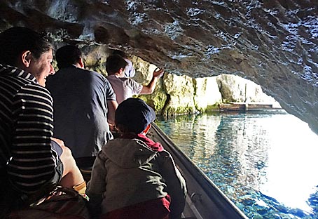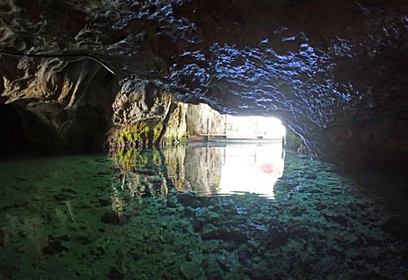Vor diesem Spalt muss der Kahn umdrehen. Die Höhle geht dahinter noch weiter. > |