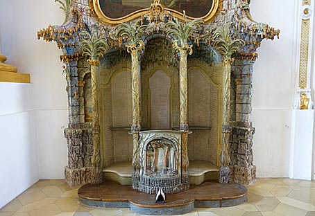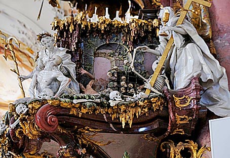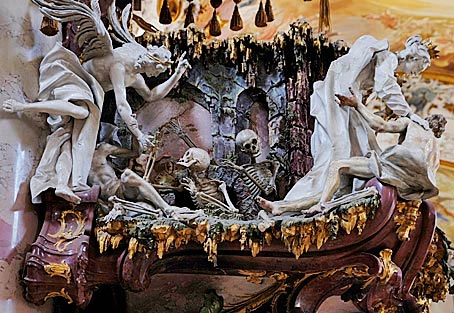 Die Rokkoko-Kanzel an der Südwand hat Ezechiels Vision vom Totenfeld zum Thema.