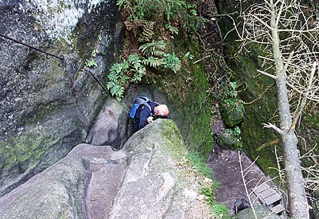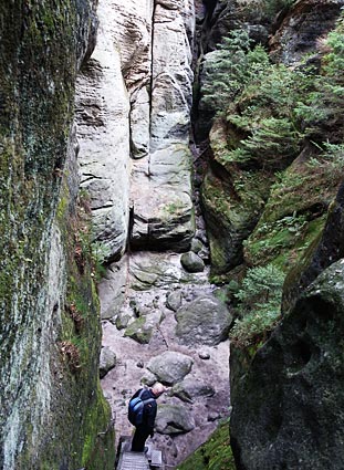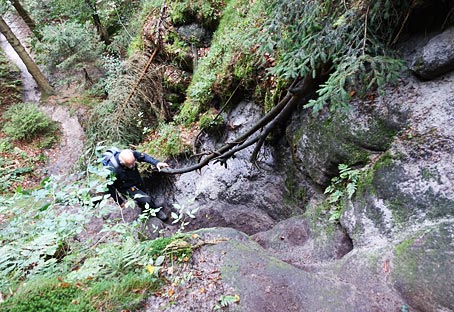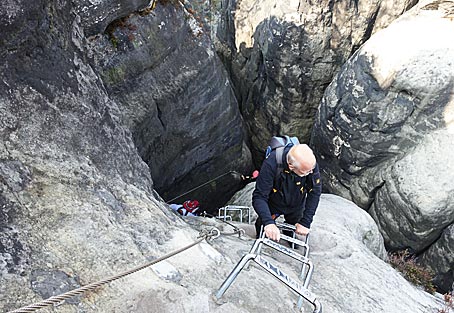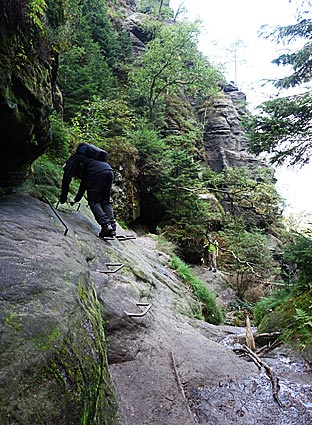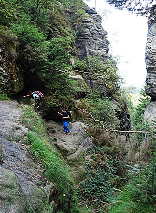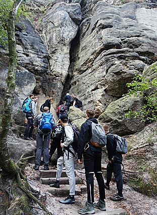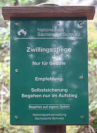 Wir haben die Zwillingsstiege vom Nassen Grund aus über die Eulentilke und die Untere Affensteinpromenade erreicht.