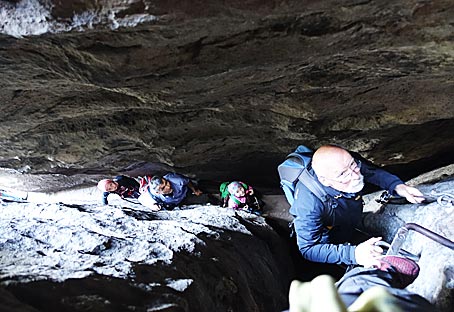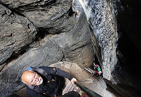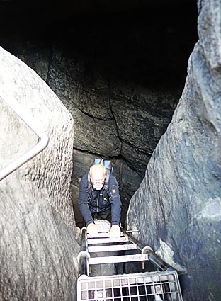 Geschafft - Helmut hat sich durchgezwängt und taucht gerade in der Spalte auf. ^