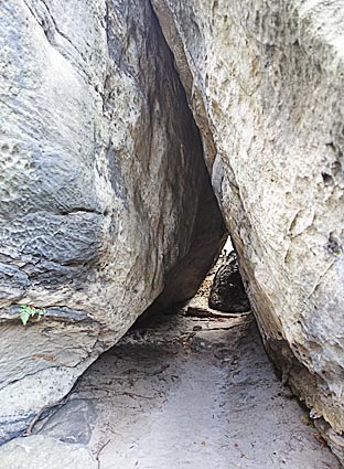 Von der oberen Rampe, die schräg aufwärts zum schmalen Durchgang
