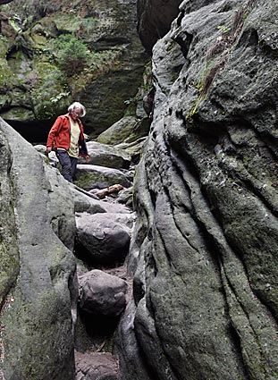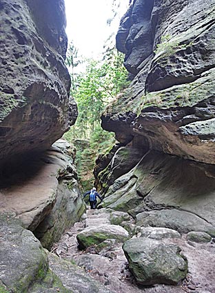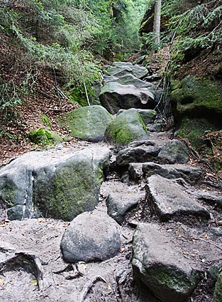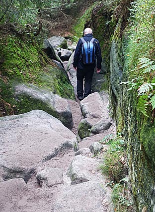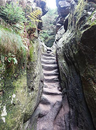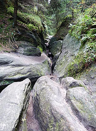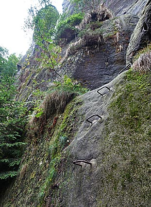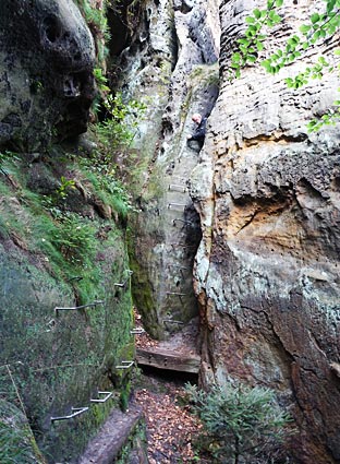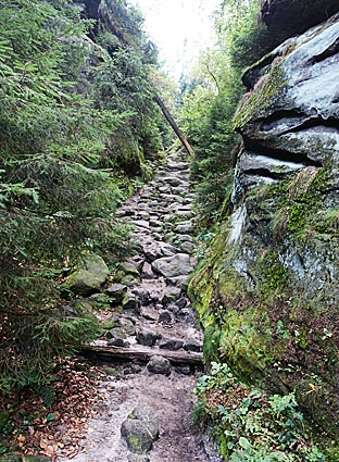 Durch eine feuchte Schlucht es geht immer noch relativ steil bergan. Um zur oberen Häntzschelstiege zu gelangen, |