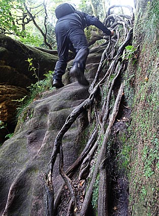 An der riesigen Wurzel geht es dann wieder steil nach oben. |