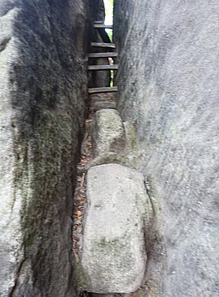 Kurz hinter diesen Felsmurmeln taucht der Einstieg zur oberen Häntzschelstiege auf.
