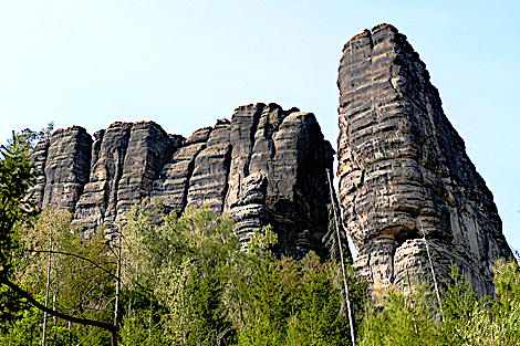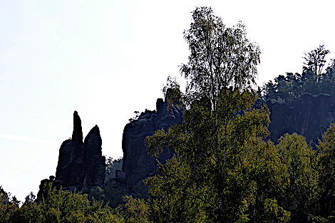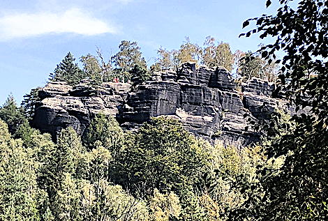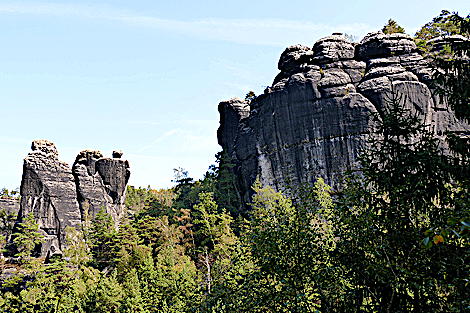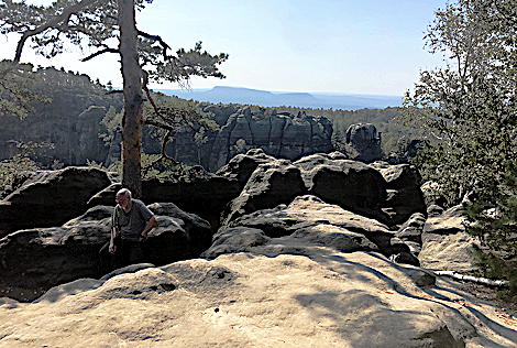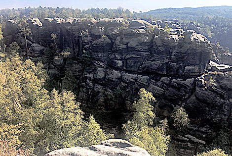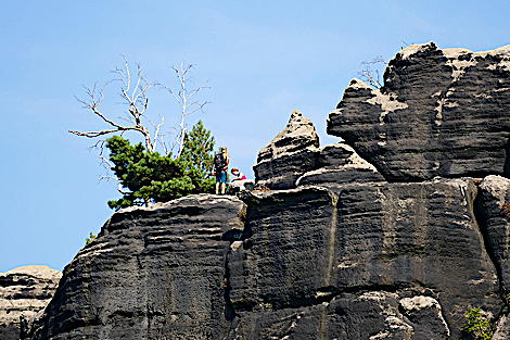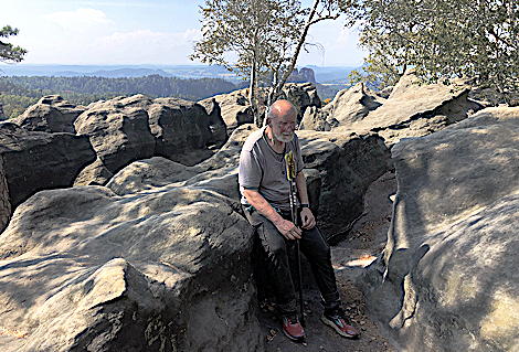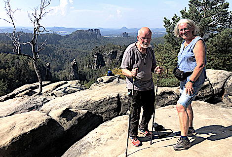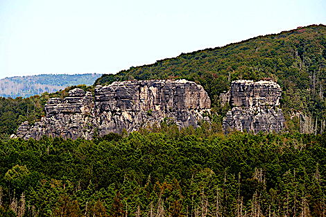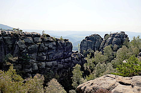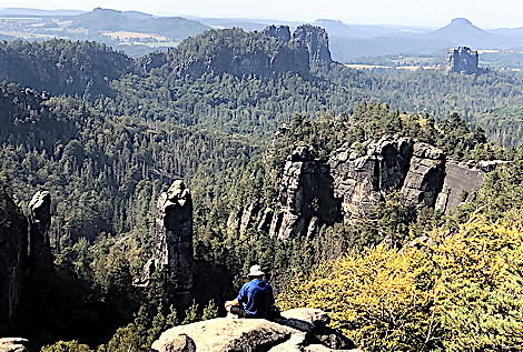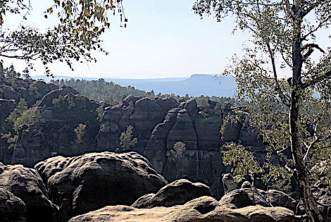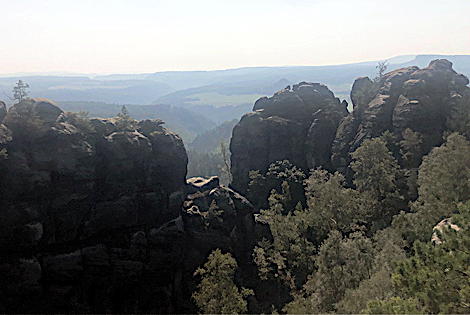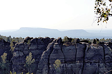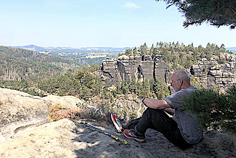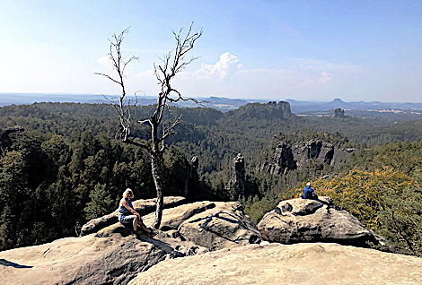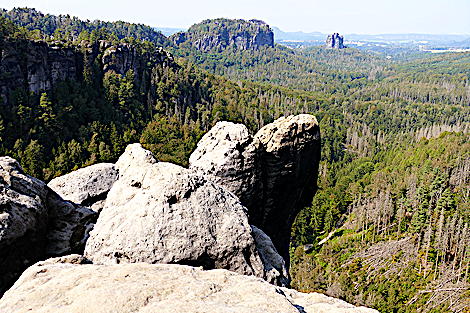 ![]() Oben am Domerker angekommen erwartete uns eine tolle Aussicht in Richtung Schrammsteine und Falkenstein. |