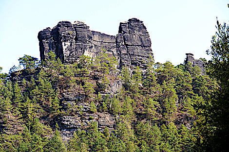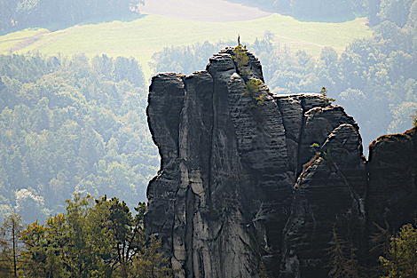 der Mönchsfelsen - rechts im Hintergrund die Festung Königsstein