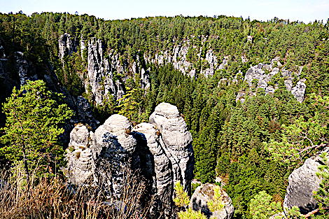 von der Basteibrücke zum Ferdinandstein (links) und zum Gansfelsen