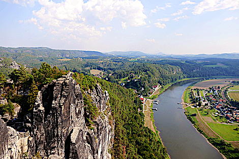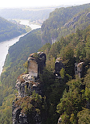 von der Basteiaussicht ins Elbtal und zum Wartturm >