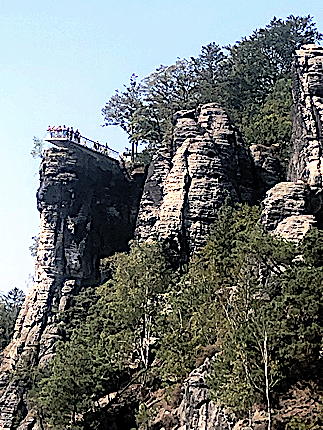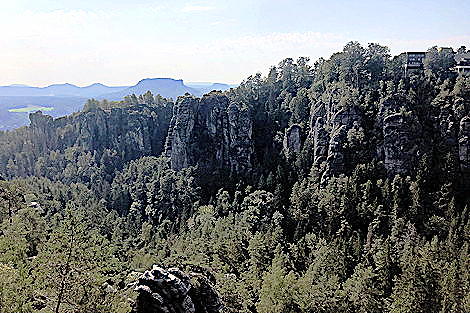 Blick über die Basteibrücke zum Neurathener Felsentor - rechtsstehe