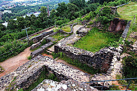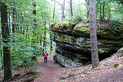 ![]() Unterhalb der Festung führt der Wanderweg an den Schlossberg-Höhlen vorbei. |