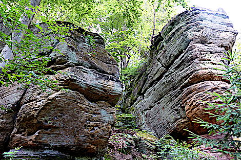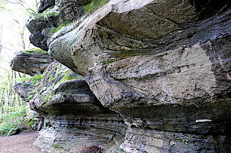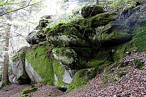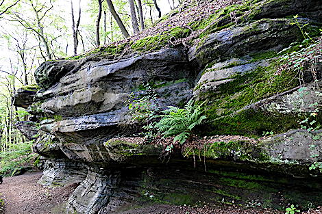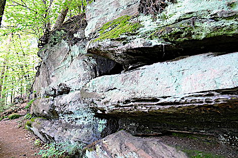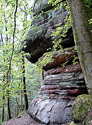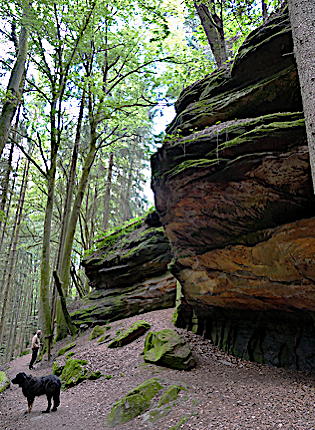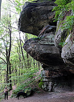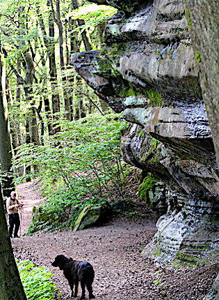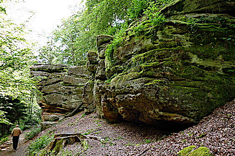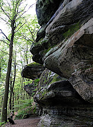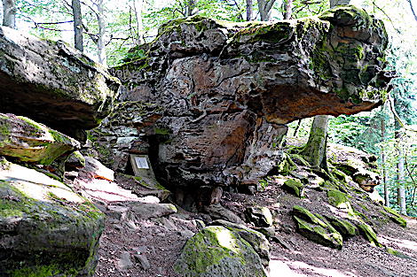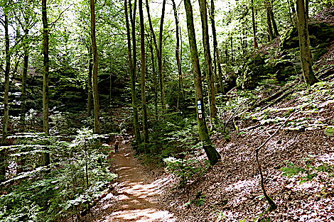 ![]() Die Kirkeler Tafeltour ist fast 9 km lang. Man kann auch den kürzeren Felsenpfad gehen. Er führt auf nur 4,6 km an den zahlreichen Felsformationen vorbei. |