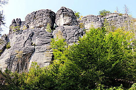Oben: ein erster Blick auf den Felsen des Kuhstalls