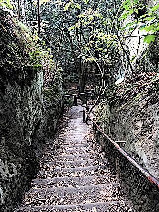am Fuß des Kuhstalls kamen wir zu der steilen Metalltreppe auf dem