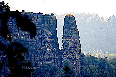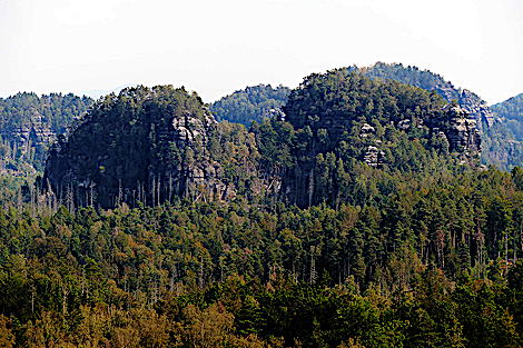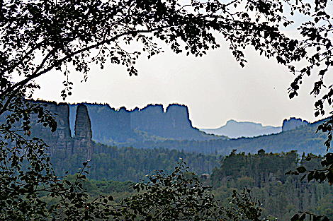 liegt die Schrammsteinkette, rechts der Falkenstein und mittig
