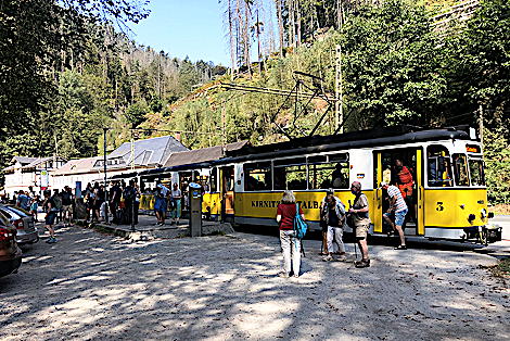 Auch im Kirnitzschtal fährt eine Straßenbahn und wird, wie man