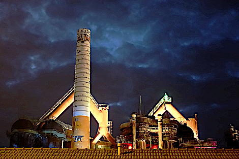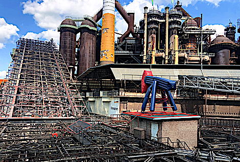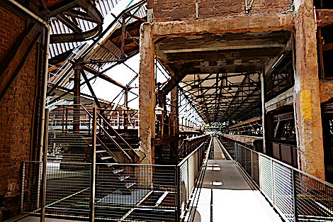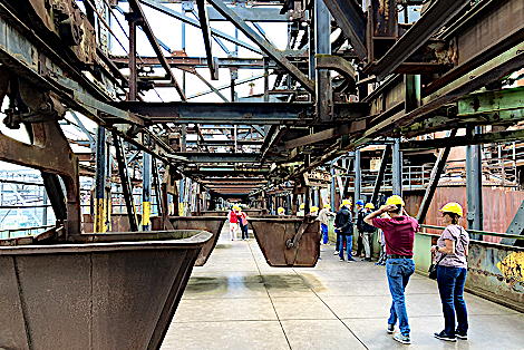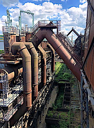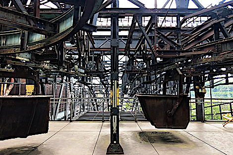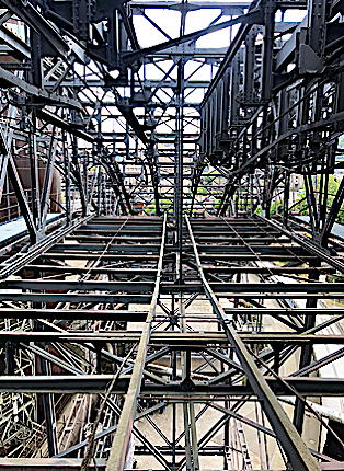 ![]() Die historischen Anlagen der Roheisenproduktion sind in der Völklinger Hütte komplett erhalten. Erzschrägaufzug