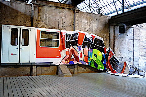 den Schrägaufzug wurde das Material in Hängebahnwagen